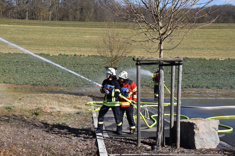 In der Mittagspause gab es an einem kleinen Lagerfeuer eine Brotzeit. Die Feuerwehrführung engagierte sich auch im Vorfeld der Pflanzaktion beim Abstecken und Freisägen der Pflanzstellen. Nun hoffen alle, dass die Tannenpflänzchen gut anwachsen.